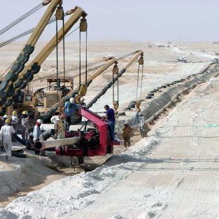 A pipeline was laid to transport water which was injected into oil wells to maintain press...
