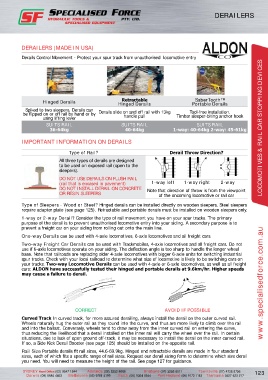 require adapter plate (see page 125). Retractable and portable derails must be installed on wooden sleepers only.