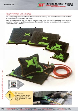 each other thanks to the special dimpled surface. Eleven models of air bag are available with lifting capacities