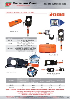 NOTE: CR-150C is also capable of cutting 130mm OD Poly Ship Anchor Rope (tested under tension)
