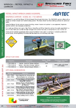 Designed for use with the Master 35 Petrol Impact Wrench and other tools. The MASTER35 carrier is fitted with a