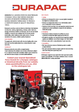 Durapac is a LEaDiNG forcE iN hiGh prEssurE Our Values