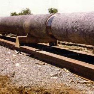 A pipeline was laid to transport water which was injected into oil wells to maintain press...