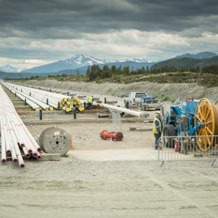 A pipeline was laid to transport water which was injected into oil wells to maintain press...