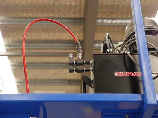 The 100 ton roll frame press (pictured) incorporates a DURAPAC 100 ton double acting 150mm & 300mm stroke cylinder for straightening of heavy haulage vehicle axles. For smaller size vehicles, our range of 50-ton single-acting 150mm stroke aluminium and steel cylinders are used in the maintenance pits for axle straightening. Each system is powered by one of our DURAPAC reliable electric hydraulic power packs which offer high-performance flow combinations.