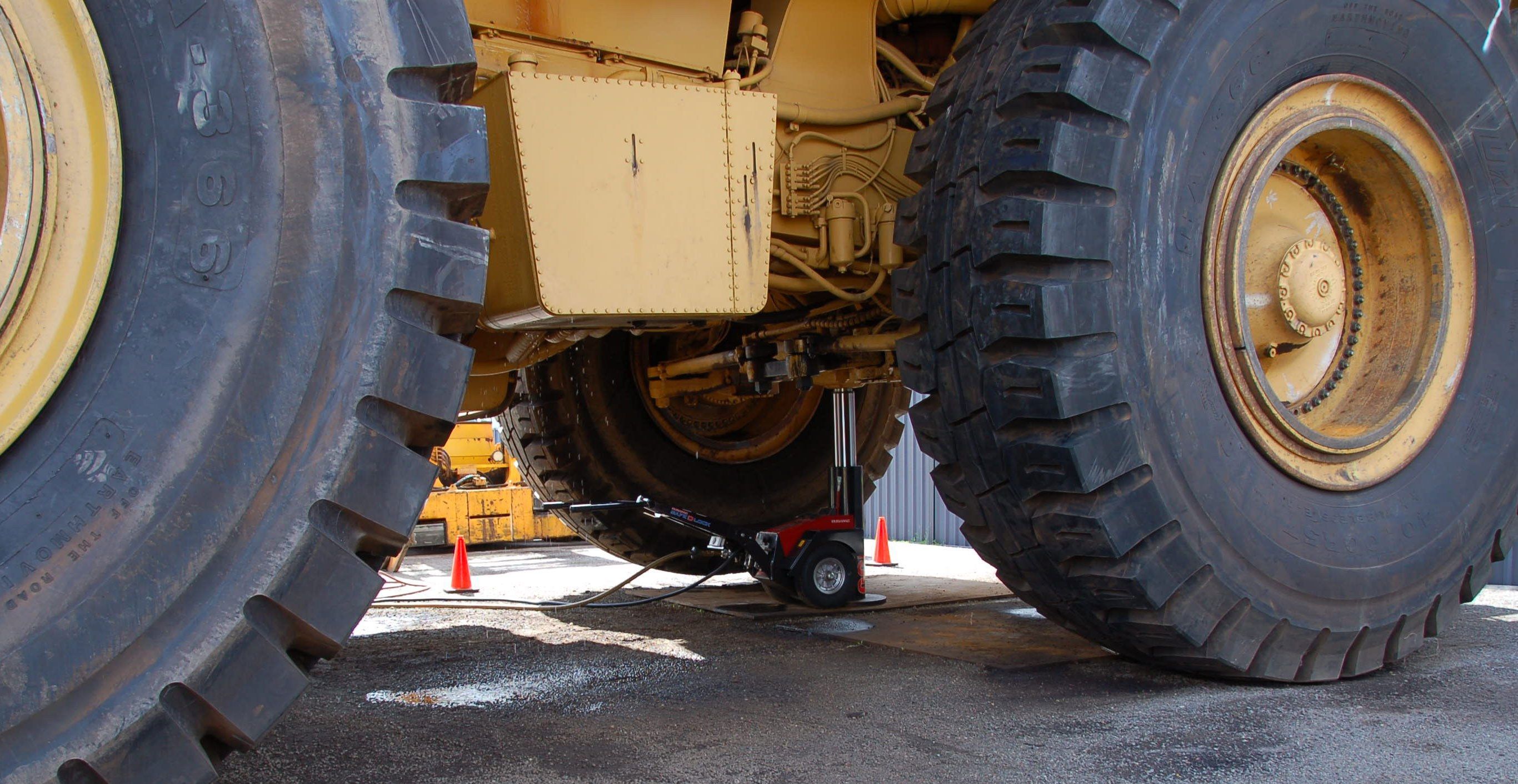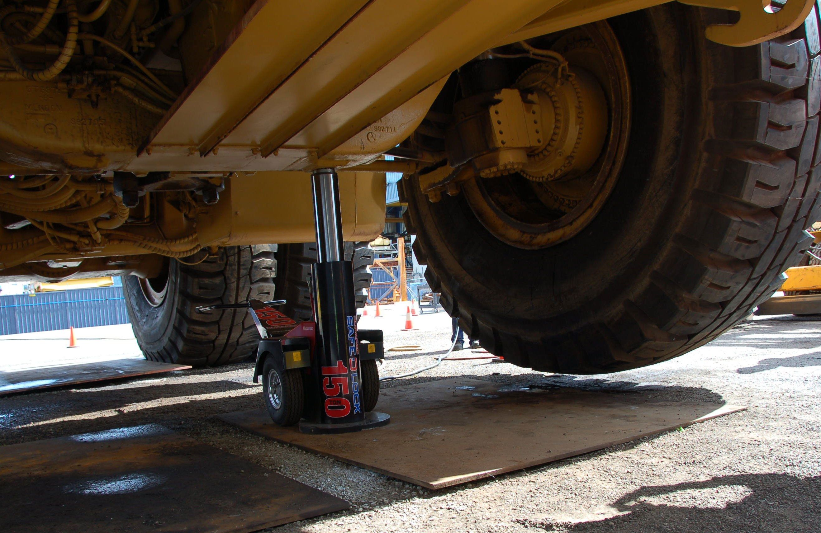 SAFE-D-LOCK unit from Durapac was loaned out for repetitive work changing dump truck tyres for just over a week. Carrying out multiple lifts throughout the day.