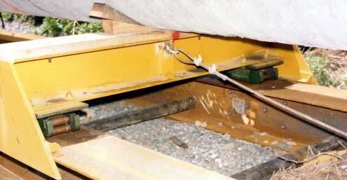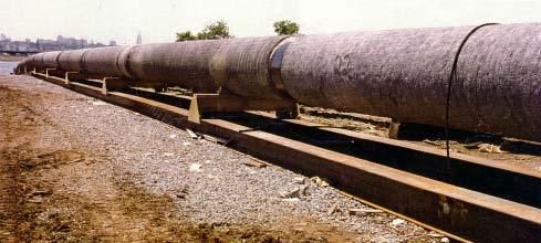A series of pipe cradles were created to accomplish this outfall pipe launch. The cradles, with two Hilman Rollers bolted to each, create a recyclable system for launching 91 metre long strings of large diameter pipe. The Rollers run on a specially built track of twin I-beams that run all the way into the channel. When the pipe is buoyant, the cradles are brought back to shore and can be used over again. The pipe was towed for 12 hours to where it is buried in the ocean floor.
