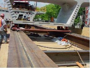 The contractor utilised two carts equipped with a pair of modified 15-OT Hilman Rollers utilizing Accu-Roll Guidance system in a special configuration, guiding the rollers along the central median of each support beam to launch the 40 tonne pre-cast segments.