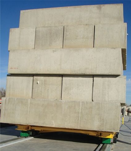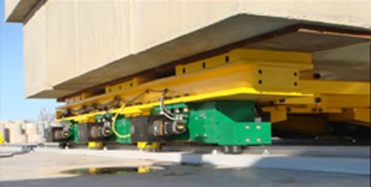The test was conducted by mounting six 90 Tonne (100-ton) capacity Hilman Motorised Rollers to a cart loaded with 326 Tonnes of concrete block in order to simulate the required maximum load once installed. The concrete for this simulation needed to be transported 48.7 metres to and from the site (a total of 97.4m) at safe low speeds of up to 30cm/min.