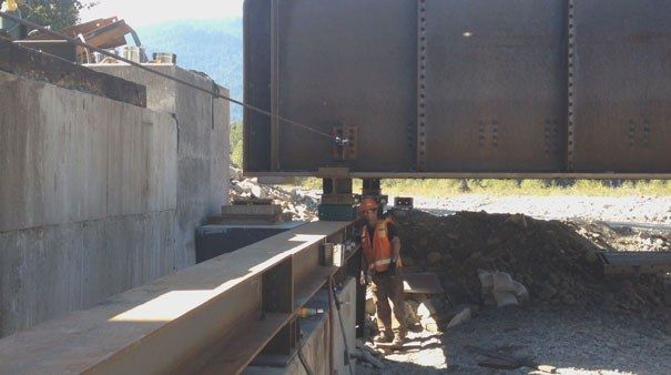 Clearance between each bridge section and the abutment was minimal and if the load rollers were not guided in-line, the bridge section could have moved off course, resulting in jarring or even jamming. Even with the two winches used to pull the bridge sections out and in, the speed of each winch needed to be monitored and controlled so that each section was pulled across equally.