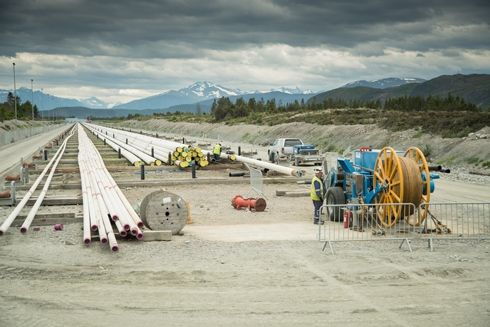 For this specific project pulling through lined pipes the machine was equipped with 1,700m of Dyneema® rope. The benefits of Dyneema® rope is light weight and low wear resistance. The Dyneema® rope also allowed the customer to wrap a high quantity of rope on the arm/reel. This would have not been achievable with galvanised or anti-twist steel rope.